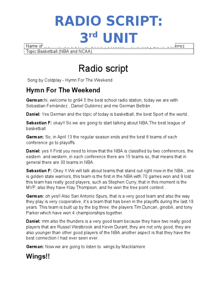 radio script document 3rd unit National Collegiate Athletic