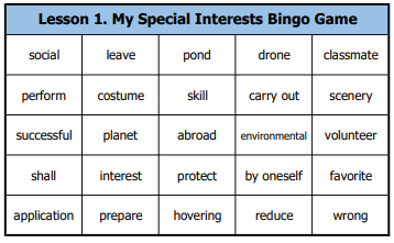 금성 중2 영어 1과 My Special Interests 빙고게임 다운로드